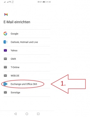 Nun wirst du aufgefordert den Typ dein Provider unterstützt. Wähle "Exchange und Office 356" aus.