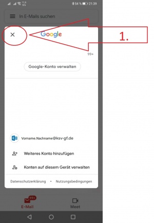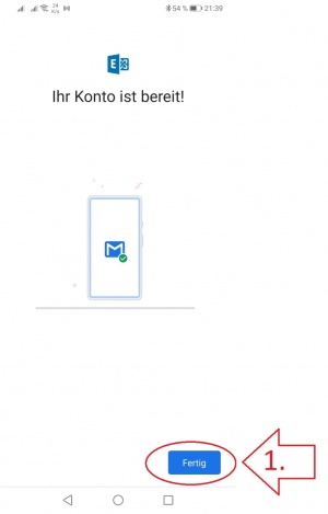 Nun erscheint der grade angelegte Account in der Aufliustung der E-Mailkoknten. Wähle nun oben links das "X" aus und den Dialog zu schließen.