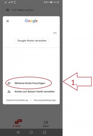 Wähle "Weiteres Konto hinzufügen" aus um die E-Mailadresse hinzuzufügen.