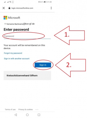 Nun wirst du aufgefordert dein Kennwort einzutragen. Im Anschluss an die Eingabe wähle "Sign in" aus.