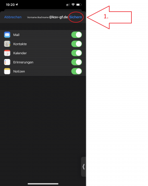 Sofern du alle Funktionen des Online Exchange Servers nutzen möchtest, musst du nur noch "Sichern" auswählen.