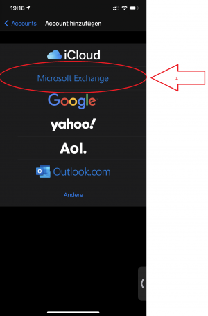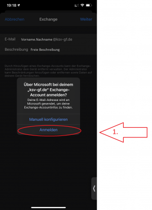 Da es sich um einen Exchange-Acoount direkt bei Microsoft handelt, wähle bitte "Anmelden" aus.
