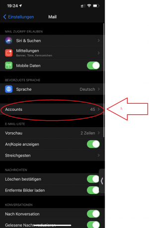 Nun siehst du Mittig auf dem Display "Accounts". Öffne dies bitte.