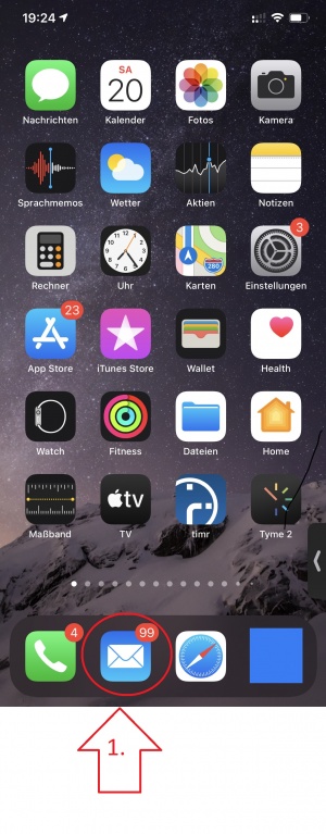Anschließend kannst du den Home-Bildschirm aufrufen, indem du entwerder den Homebutton drückst oder vom unteren Bildschirmrand nach oben wischt. Öffne nun die Mail App.
