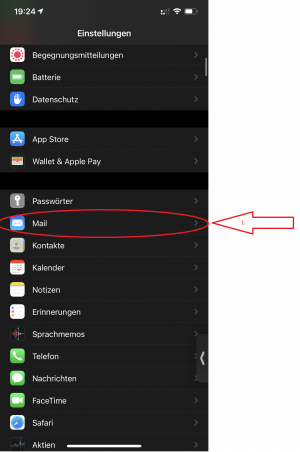Anschließend Scrollt du etwas nach unten und sucht "Mail". Wähl dieses auch aus.